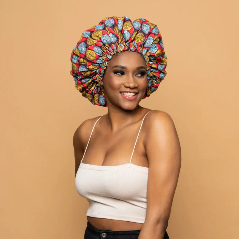 Le bonnet imprimé wax avec son intérieur en satin est l’accessoire indispensable qui permet de conserver l’hydratation de vos cheveux, les protéger tout au long de la nuit. Il s’adapte facilement à la forme de la tête grâce à son élastique.