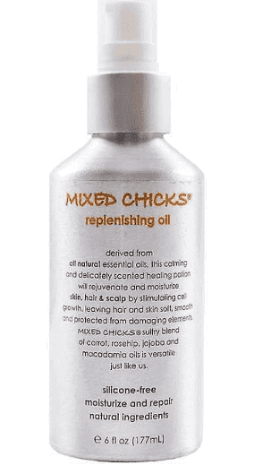 L'huile reconstituante de la marque  Mixed Chicks est dérivée de toutes les huiles essentielles naturelles.