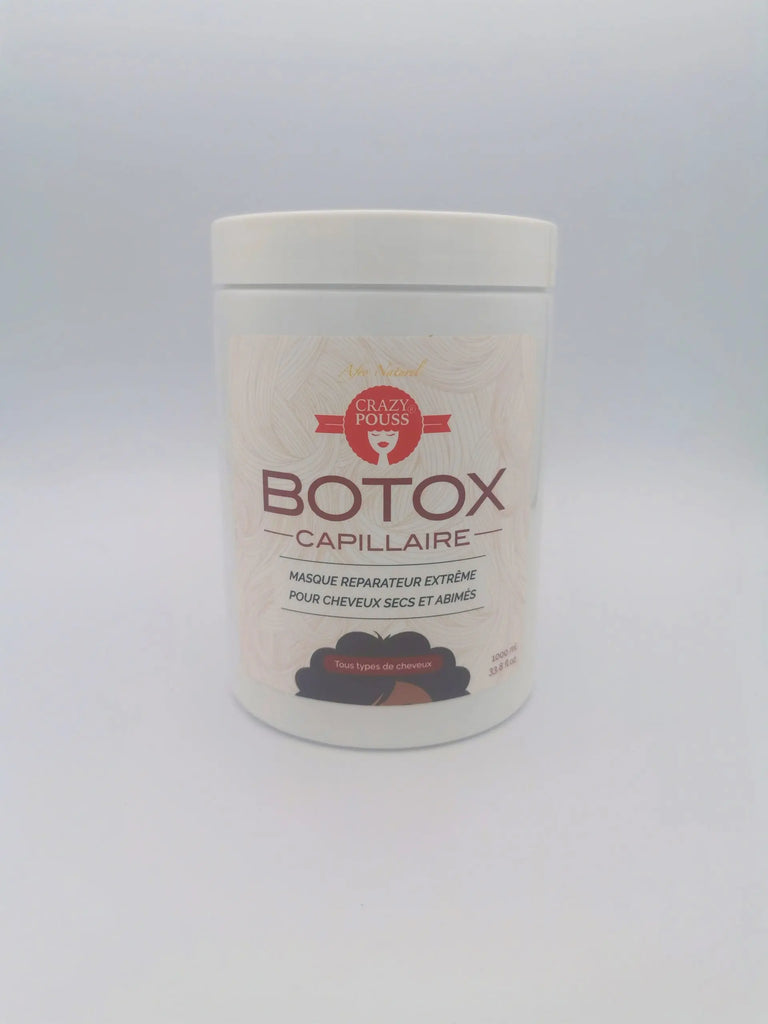 Le Crazy Pouss Botox Capillaire est un soin capillaire intensif conçu pour revitaliser et renforcer les cheveux abîmés, secs ou fragilisés. Ce produit agit comme un “botox” pour les cheveux, en offrant une réparation profonde et une hydratation intense, tout en apportant brillance et douceur.