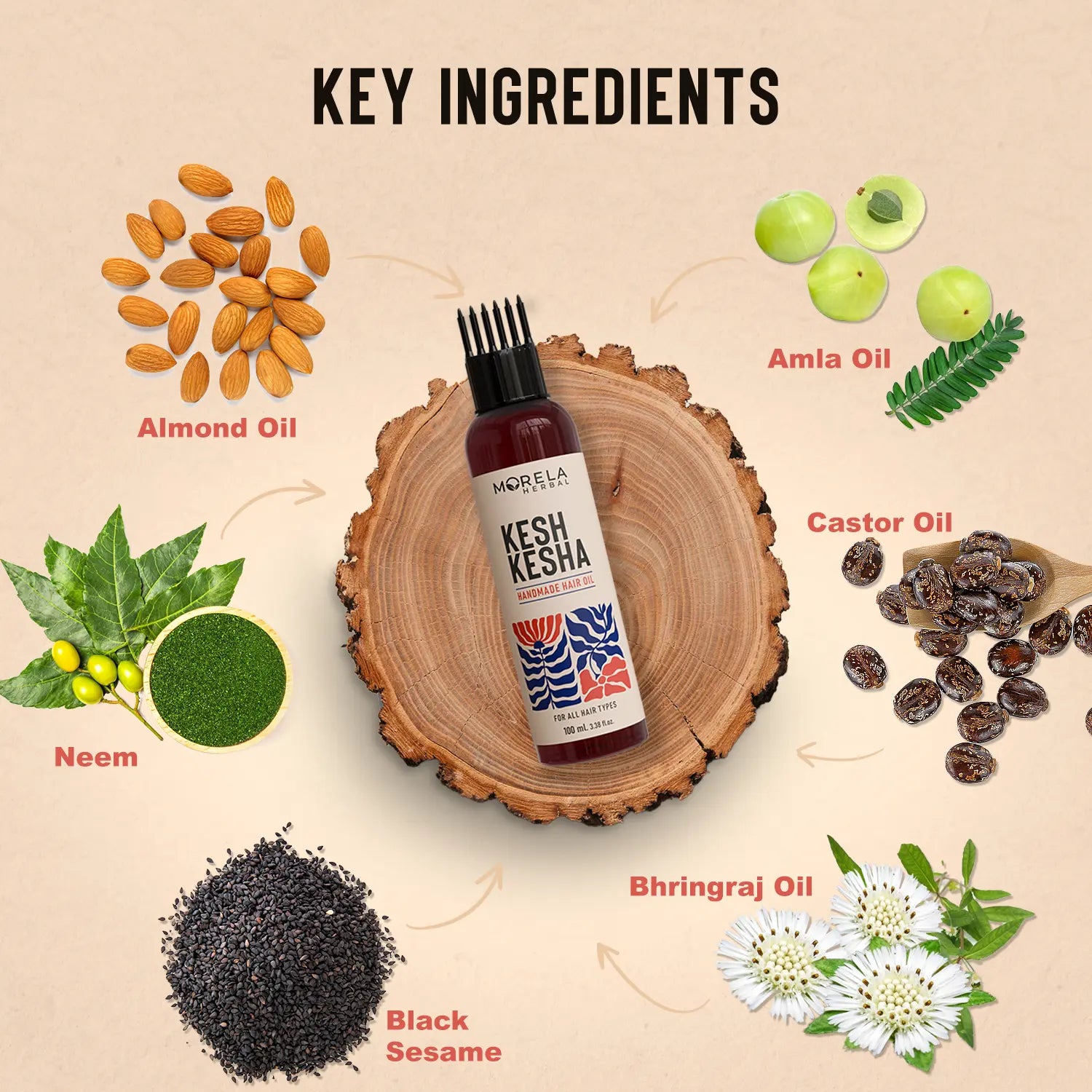 Amla Oil, Rosemary Oil, Bhringraj Oil, Castor Oil, Almond Oil, Sunflower Oil, Pumpkin, Black Sesame, Flax, Camellia, Mustard, Pomegranate, Hemp, Grape, Poppy, Borage, Cold Pressed Coconut, Brahmi, Hibiscus, Curry Leaf, Saw Palmetto, Soyabean, Arnica, Apricot Kernel, Cucumber, Shea, Malkangnl, Karonja, Wheat Grass, Bergamot, Cedarwood, Stinging Nettle, Bottle Gourd, Bakuchi, Bamboo, Wheat Germ, Halim, plum Kernel, Avocado, Carrot, Passion Fruit, Clary Sage, Tea Tree, Birch, Argon, Clove, Jojoba, Lemon Grass, Lavender, Eucalyptus, Helichrysum, Nutmeg, Macadamia Nut, Marula, Ylang Ylang, Myrrh, Tamanu, Kalonji, Pecan Nut, Hazel Nut, Walnut.